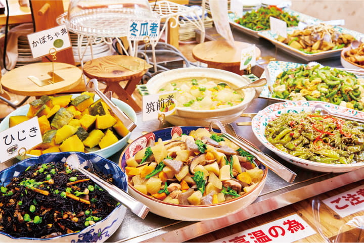 素材の味を活かしたお惣菜の品々をお腹いっぱい味わえる、
