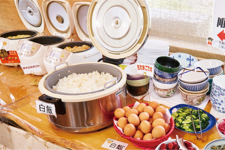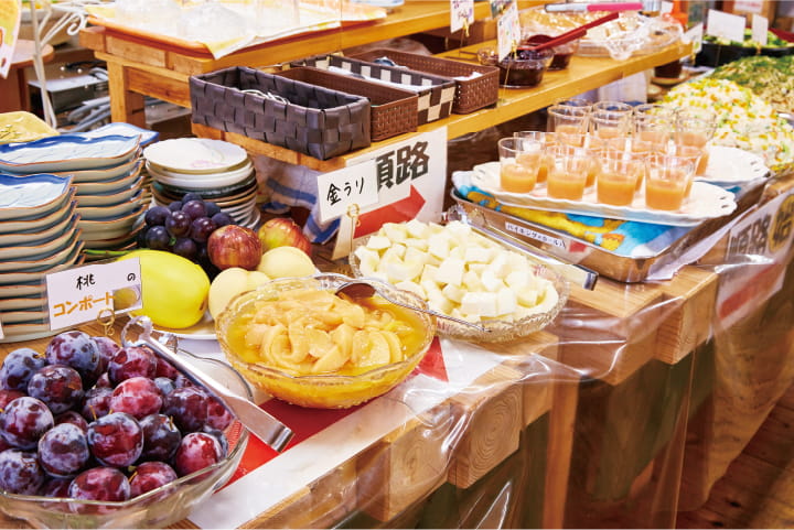 産地直売所の地元野菜をふんだんに使用した様々な料理や、